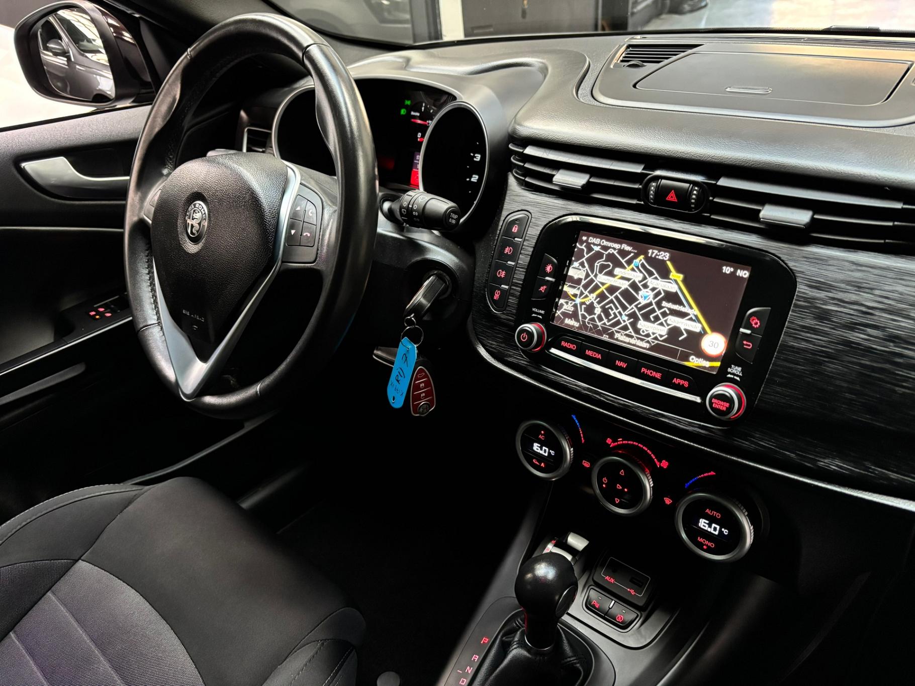 Met de routebegeleiding van het navigatiesysteem kunt u zich volledig op het verkeer concentreren. De automatische airconditioning zorgt onder alle omstandigheden voor een prettige temperatuur. Volume aanpassen, andere radiozender? U bedient het audiosysteem veilig en handig met de functies op het stuur. Parkeersensoren helpen u tijdens het in- en uitparkeren. Het hoort bij een intelligente auto als deze dat hij zelf in staat is om zijn omgeving in de gaten te houden. Dat doet deze Alfa Romeo met een automatisch inschakelbare verlichting en een regensensor. Extra opties op deze auto zijn: cruise control, automatisch dimmende binnenspiegel, lederen stuur en centrale deurvergrendeling met afstandsbediening.