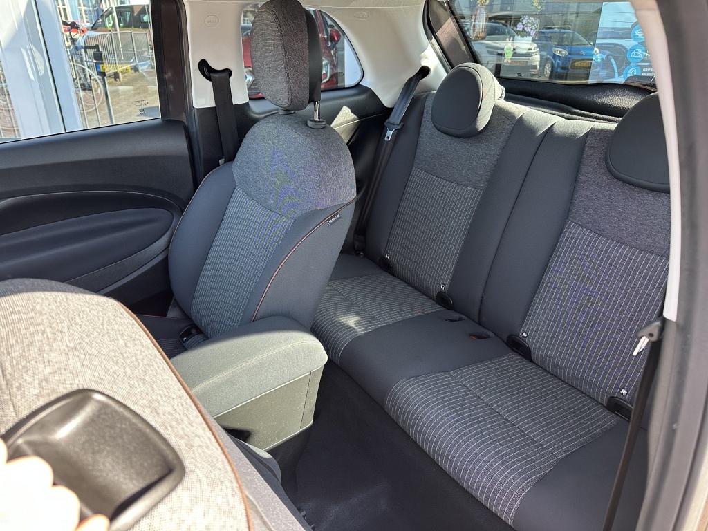 De nieuwste veiligheidssystemen komen in deze Fiat 500 samen. In het instrumentarium kunt u bovendien de verkeersborden zien die u onderweg tegenkomt. Zo helpt deze Fiat u om veiliger te rijden. Het Lane-keeping systeem let constant op en waarschuwt of corrigeert als u onoplettend over de lijnen van de rijstrook gaat. Op een kop-staartbotsing zit niemand te wachten. Daarom is de forward collision warning onderweg constant alert en berekent via een sensor de veilige afstand tot voorliggers. De veiligheid van deze auto wordt verder verhoogd door Abs - anti blokkeer systeem met brake assistant, vermoeidheidsherkenning en bandenspanningcontrolesysteem.