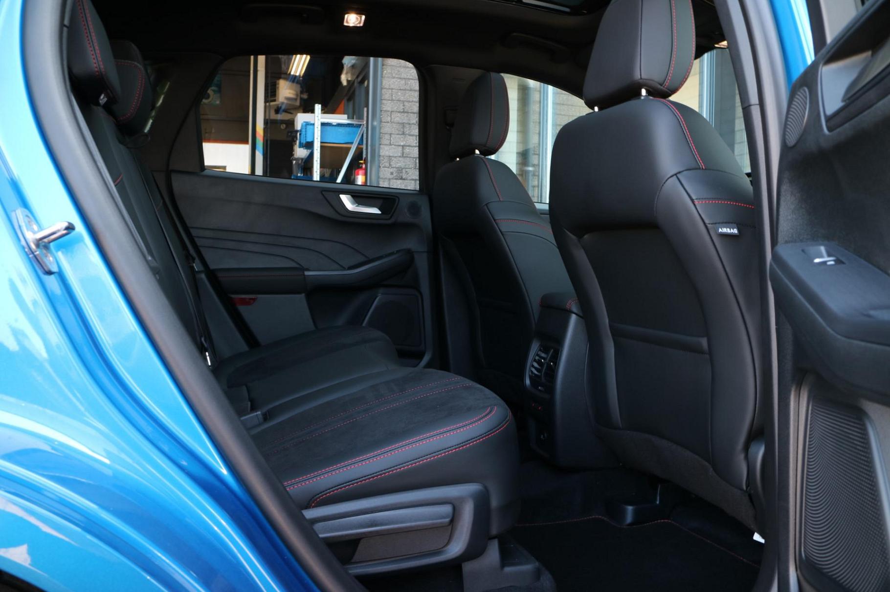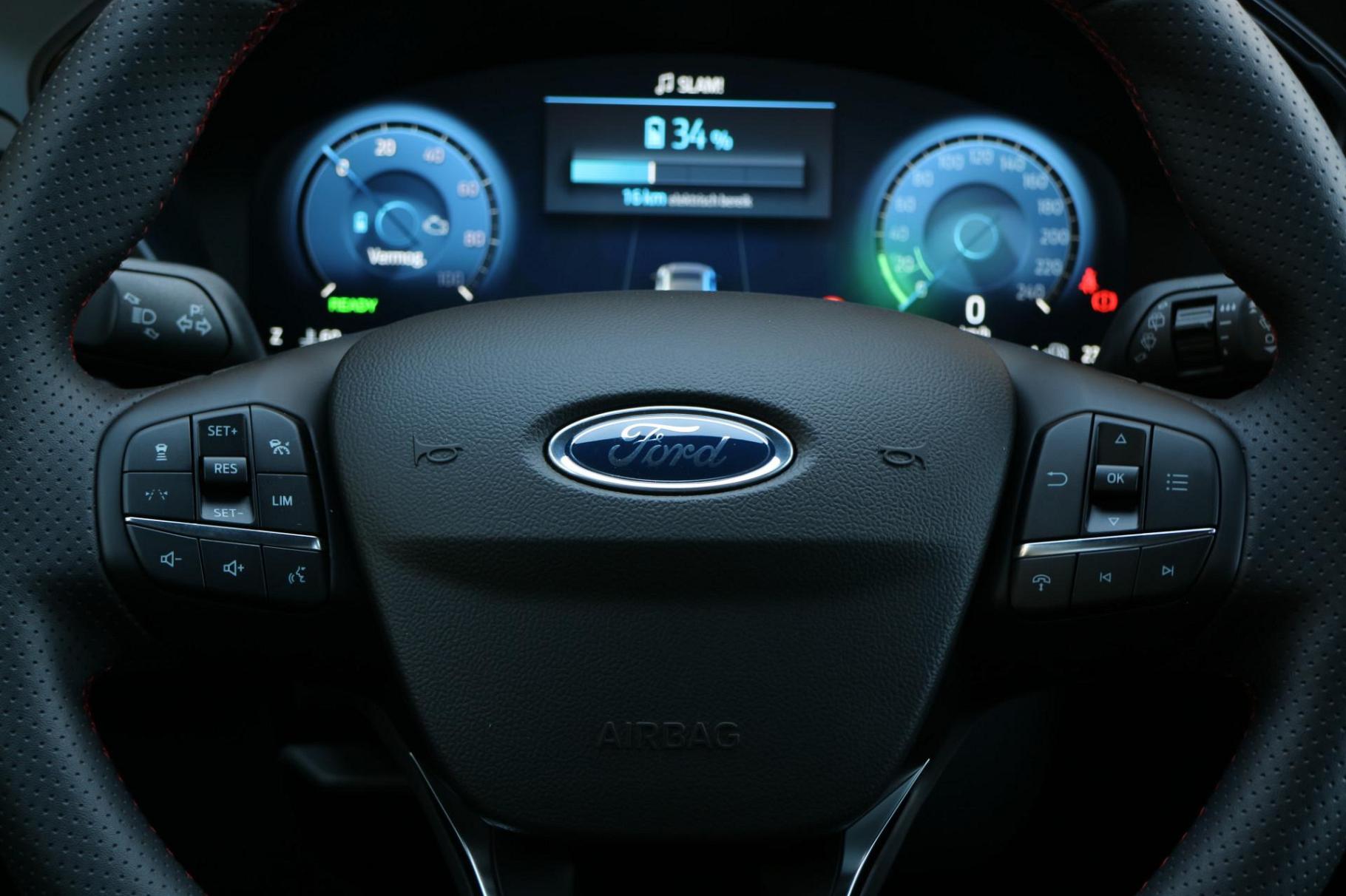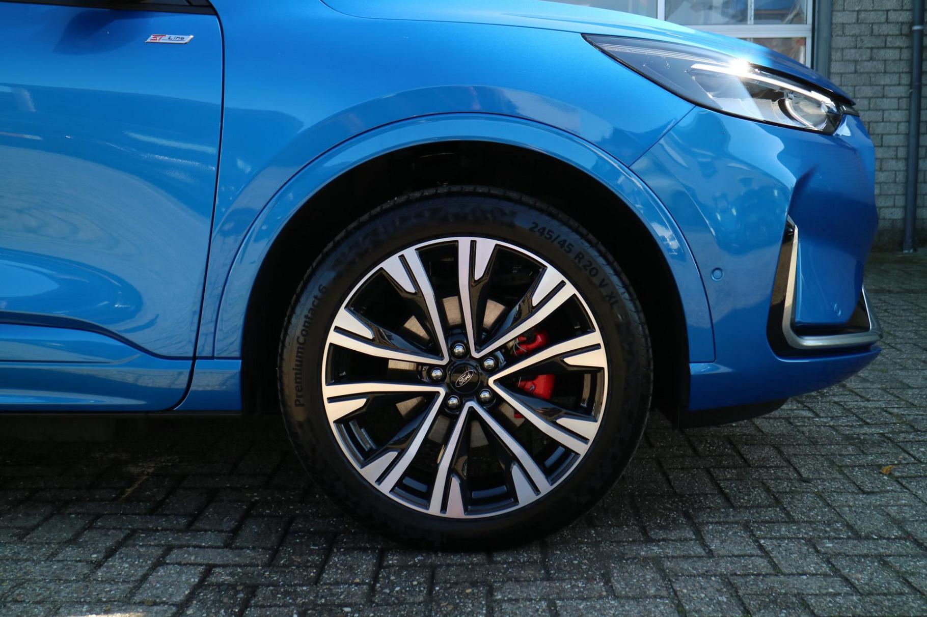 Ford, een merk dat staat voor kwaliteit en een drang naar innovatie. 'Go Further' zeggen ze daar. Op de teller van deze goed onderhouden auto staat slechts 54 kilometer. De auto is van bouwjaar 2025. Een krachtige motor geeft deze auto zijn sportieve prestaties. Zit u goed? De stoelen zijn eenvoudig instelbaar dankzij de elektrische bediening met geheugen. Het interieur lijkt groter en ruimtelijker dankzij het elektrisch bedienbare glazen panoramadak. De achterklep opent automatisch met een druk op de knop. Handig als u met volle handen staat. Ook achterin is iedereen snel op temperatuur door de verwarmde achterbank. Opvallend is de geavanceerde matrix LED-verlichting met daglichtkwaliteit. De koplampen dimmen automatisch het deel van de lichtstraal waar voor- of tegenliggers in rijden. De overige segmenten blijven aan en verlichten de weg maximaal. Tot de uitrusting behoren ook 20 inch lichtmetalen velgen, geluidsisolerende ramen, in delen neerklapbare achterbank, LED-achterlichten, sportuitlaat en verstelbare lendensteunen.