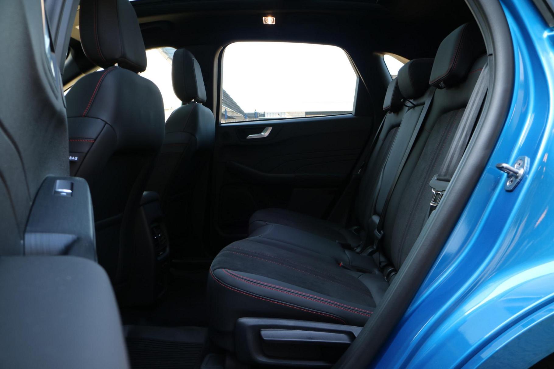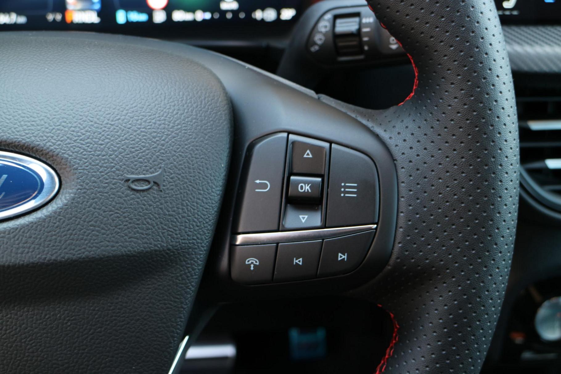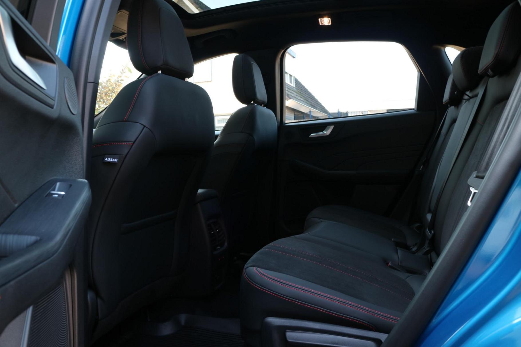 Ford, een merk dat staat voor kwaliteit en een drang naar innovatie. 'Go Further' zeggen ze daar. Op de teller van deze goed onderhouden auto staat slechts 54 kilometer. De auto is van bouwjaar 2025. Een krachtige motor geeft deze auto zijn sportieve prestaties. Zit u goed? De stoelen zijn eenvoudig instelbaar dankzij de elektrische bediening met geheugen. Het interieur lijkt groter en ruimtelijker dankzij het elektrisch bedienbare glazen panoramadak. De achterklep opent automatisch met een druk op de knop. Handig als u met volle handen staat. Ook achterin is iedereen snel op temperatuur door de verwarmde achterbank. Opvallend is de geavanceerde matrix LED-verlichting met daglichtkwaliteit. De koplampen dimmen automatisch het deel van de lichtstraal waar voor- of tegenliggers in rijden. De overige segmenten blijven aan en verlichten de weg maximaal. Tot de uitrusting behoren ook 20 inch lichtmetalen velgen, geluidsisolerende ramen, in delen neerklapbare achterbank, LED-achterlichten, sportuitlaat en verstelbare lendensteunen.