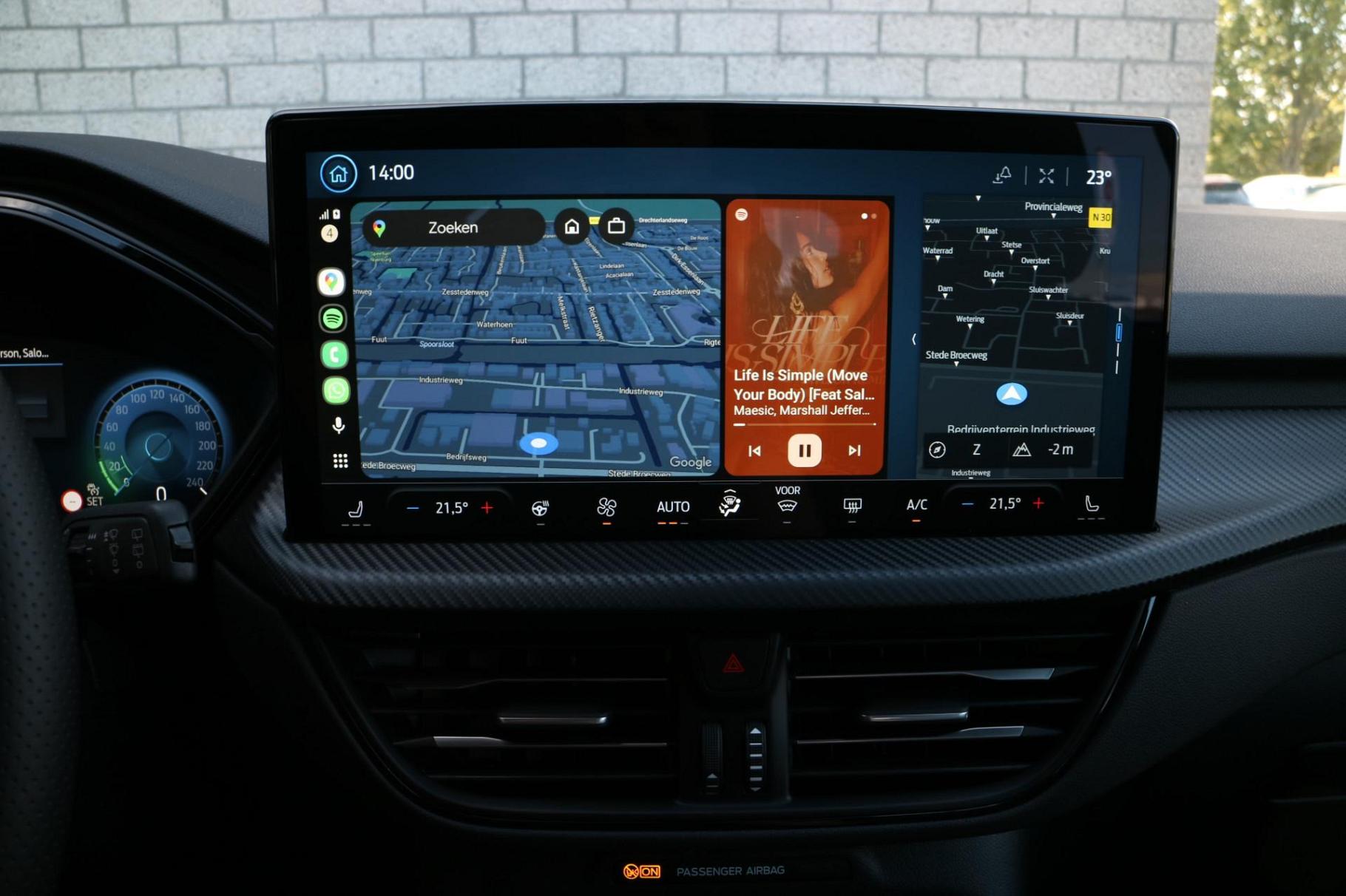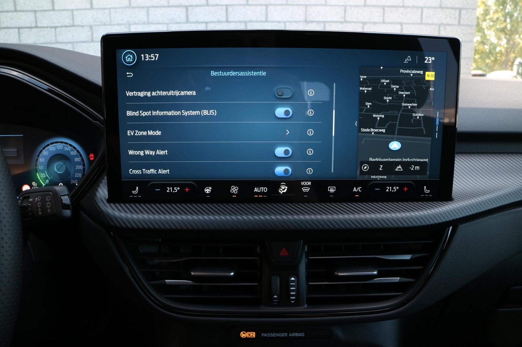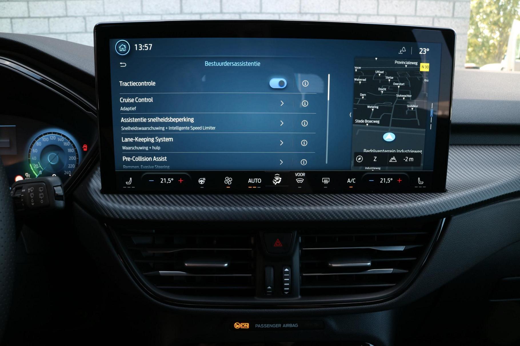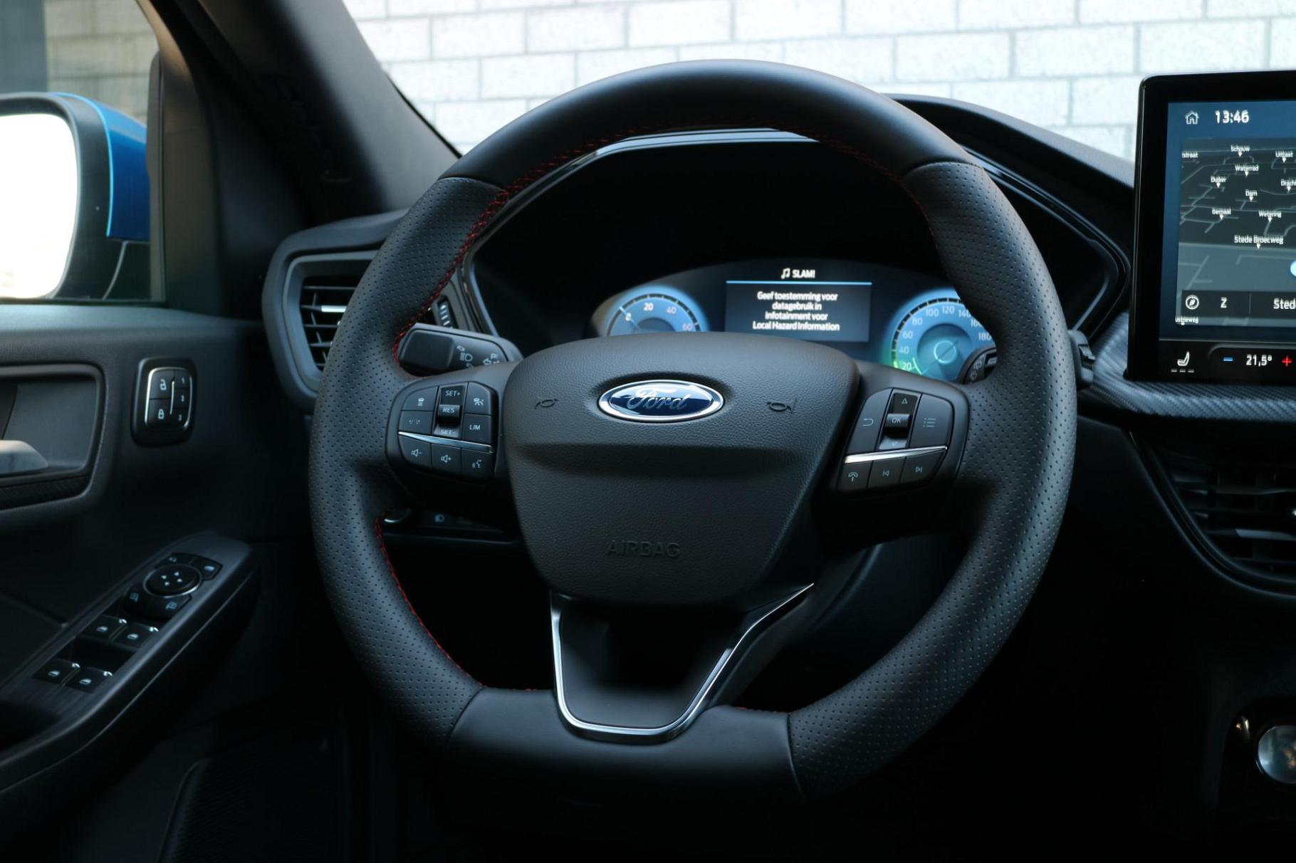 Aan boord van deze Ford houden verschillende geavanceerde systemen voor u de weg in de gaten. Ze waarschuwen u voor noodsituaties en kunnen in een aantal gevallen ook zelf ingrijpen. Bij de veiligheidssystemen van deze auto hoort ook de verkeersbord-detectie. Die leest tijdens het rijden als het ware met u mee en attendeert u op de significante verkeersborden langs en boven de weg. Met het Lane-keeping systeem gaat u nooit onbedoeld over de streep. Het forward collision warning-systeem waarschuwt indien een botsing dreigt met een voorliggend of tegemoetkomend voertuig. U bent mede dankzij dodehoekdetectie, hill hold functie, vermoeidheidsherkenning, autonoom remsysteem en bandenspanningcontrolesysteem steeds veilig onderweg.