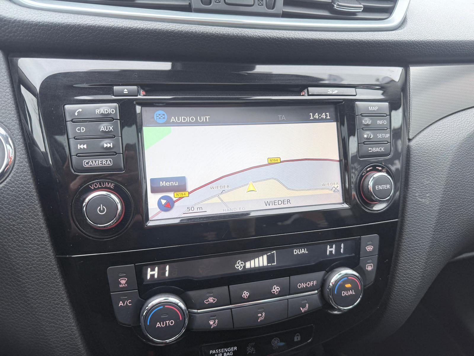 Of u nu achteruit rijdt, parkeert of een smalle straat inslaat, de 360 graden camera op deze auto, mogelijk gemaakt door vier camera's, biedt een perfect beeld van uw omgeving. Onderweg kunt u veilig genieten van het audio-installatiesysteem met DAB-radio en het full map navigatiesysteem. Want in deze Nissan bedient u ze vanaf het stuurwiel. Dankzij automatische airconditioning is het interieur behaaglijk warm of verfrissend koel. De parkeersensoren registreren alles. Ook dat ene paaltje dat net buiten uw gezichtsveld valt. De automatisch inschakelbare verlichting en regensensor zorgen dat onderweg automatisch de verlichting en de ruitenwissers worden ingeschakeld. Daarmee nemen ze u veel werk uit handen. De Nissan is standaard voorzien van: cruise control, keyless entry, automatisch dimmende binnenspiegel en lederen stuur en versnellingspook.