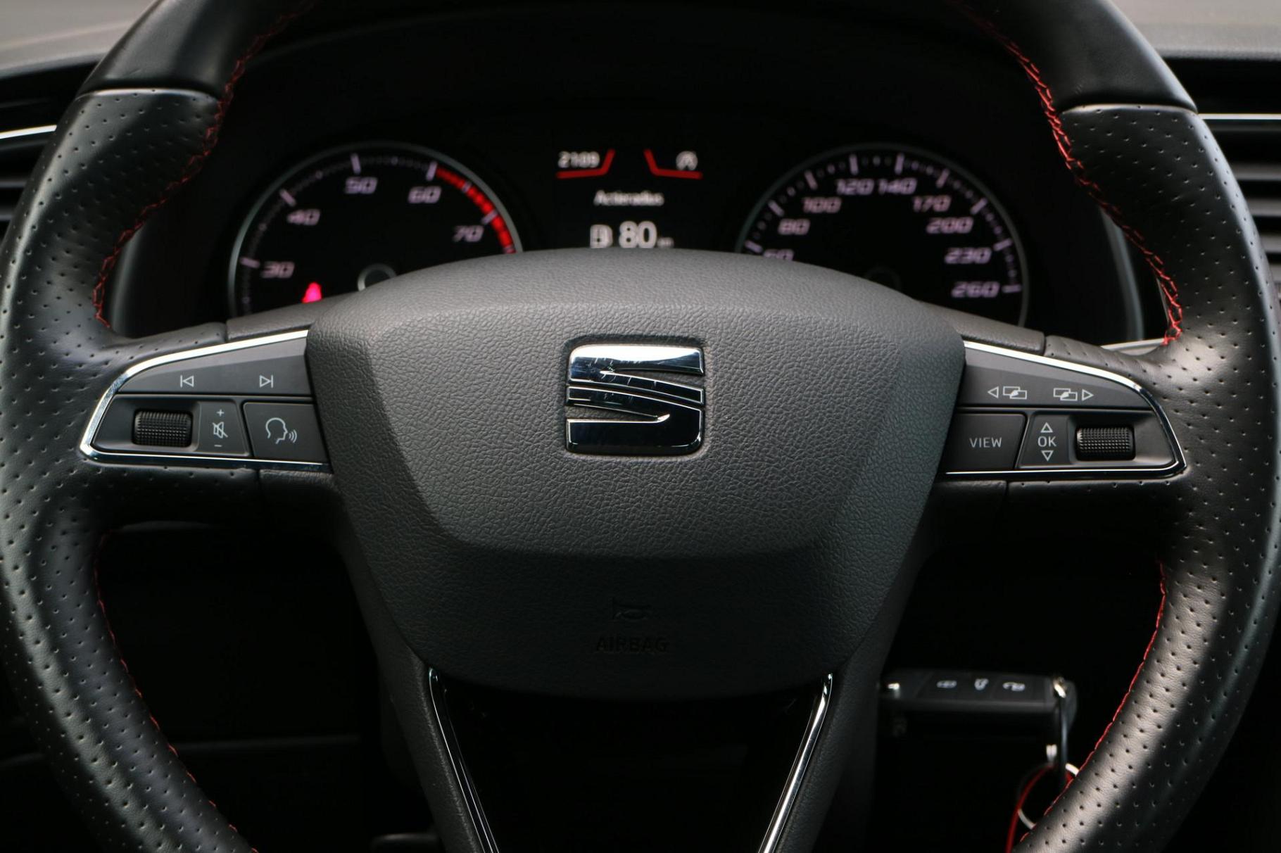 De meest gebruikte voertuigfuncties laten zich met behulp van uw stem bedienen. In één oogopslag weet u de complete systeemstatus van deze auto. Dankzij Connected Services. Met de automatische airconditioning selecteert u de gewenste temperatuur. Het systeem doet de rest. Voor een storingvrije radio-ontvangst zorgt de ingebouwde DAB-ontvanger. Hoeveel ruimte u nog heeft bij het insteken? De parkeersensoren laten het weten! Da's gemakkelijk! Ook is de SEAT uitgerust met: regensensor, cruise control, sportstuurwiel, automatisch dimmende binnenspiegel, centrale deurvergrendeling met afstandsbediening en lederen versnellingspook.