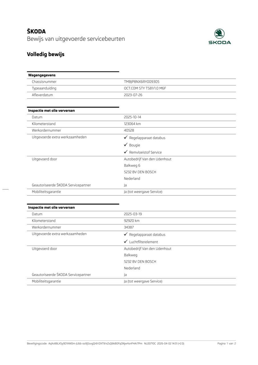 Onderhoudsboekjes: Aanwezig (dealer onderhouden)