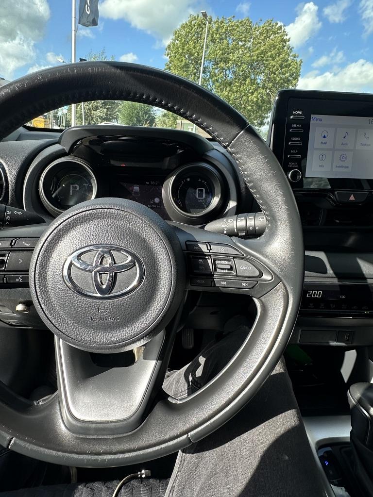 Zoals u mag verwachten van deze Toyota Yaris is hij uitgerust met een reeks aan actieve veiligheidssystemen. Dat de auto steeds meer taken van de bestuurder overneemt, merkt u bijvoorbeeld aan het systeem voor verkeersbord-detectie in deze auto. Het Lane-keeping systeem zorgt voor een automatisch constante positie binnen de rijstrook. Afdwalen is uitgesloten. De sensor van het forward collision warning-systeem registreert permanent de afstand tot voorliggers en grijpt in als een botsing dreigt. In deze Toyota vinden we verder een hill hold functie, Abs - anti blokkeer systeem met brake assistant en bandenspanningcontrolesysteem.