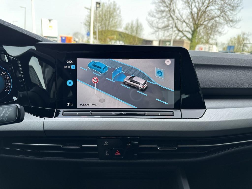 Adaptive cruise control houdt de ingestelde snelheid vast en houdt automatisch afstand tot uw voorligger. Vanaf elke plek contact maken met deze auto: dat kan met behulp van remote services, die u simpel activeert met uw smartphone. U kunt tijdens de rit uw ogen steeds op de weg houden, want het audiosysteem (met dab!) en het navigatiesysteem kunt u bedienen vanaf het stuur. Onderweg de smartphone opladen gaat helemaal zonder snoeren, door de draadloze telefoonlader. Deze Volkswagen Golf denkt vooruit als u van plan bent af te slaan. De kruisend verkeer detectie calculeert en analyseert het tegemoetkomende verkeer en waarschuwt als het risico op aanrijding bestaat. Deze Volkswagen is voorzien van automatische airconditioning, parkeersensoren achter, regensensor, keyless entry, automatisch dimmende spiegels en lederen stuur.
