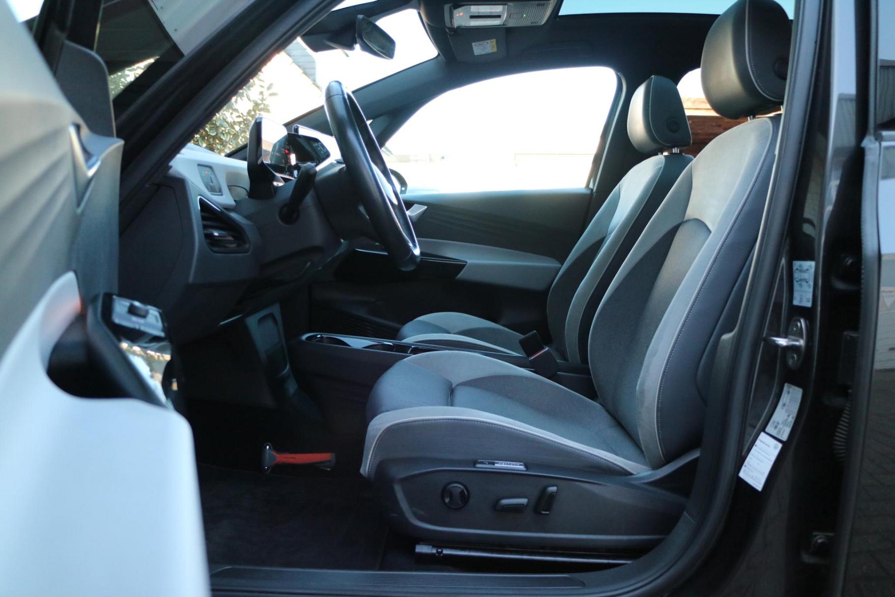 Onverwoestbaar als merk. Al jaren en jaren. Wat kunnen we nog meer zeggen? Volkswagen. U hoort slechts het lichte gezoem van de elektromotor tijdens het rijden. Niet voor niets is de vraag naar gebruikte Volkswagens zo groot, want de kwaliteit staat ook na een aantal jaren nog buiten kijf, zoals aan deze ID.3 duidelijk te zien is. Tijdens gure dagen is het prettig zitten in de verwarmbare voorstoelen, die bovendien zijn uitgerust met massagefunctie. Licht en luchtpartijen: u krijgt ze bijgeleverd dankzij het glazen panoramadak. Comfortabel houvast krijgt u van het verwarmd stuurwiel. De koplampen zijn voorzien van matrix LED-verlichting waarmee u aanzienlijk verder kan kijken in het donker. Het systeem past zelf de lichtstraal aan op het moment tegenliggers verblind kunnen worden. Bij de uitrusting van deze auto horen onder meer 20 inch lichtmetalen velgen, extra getint glas, in delen neerklapbare achterbank, LED-achterlichten, verstelbare lendensteunen en snelheidsafhankelijke stuurbekrachtiging.