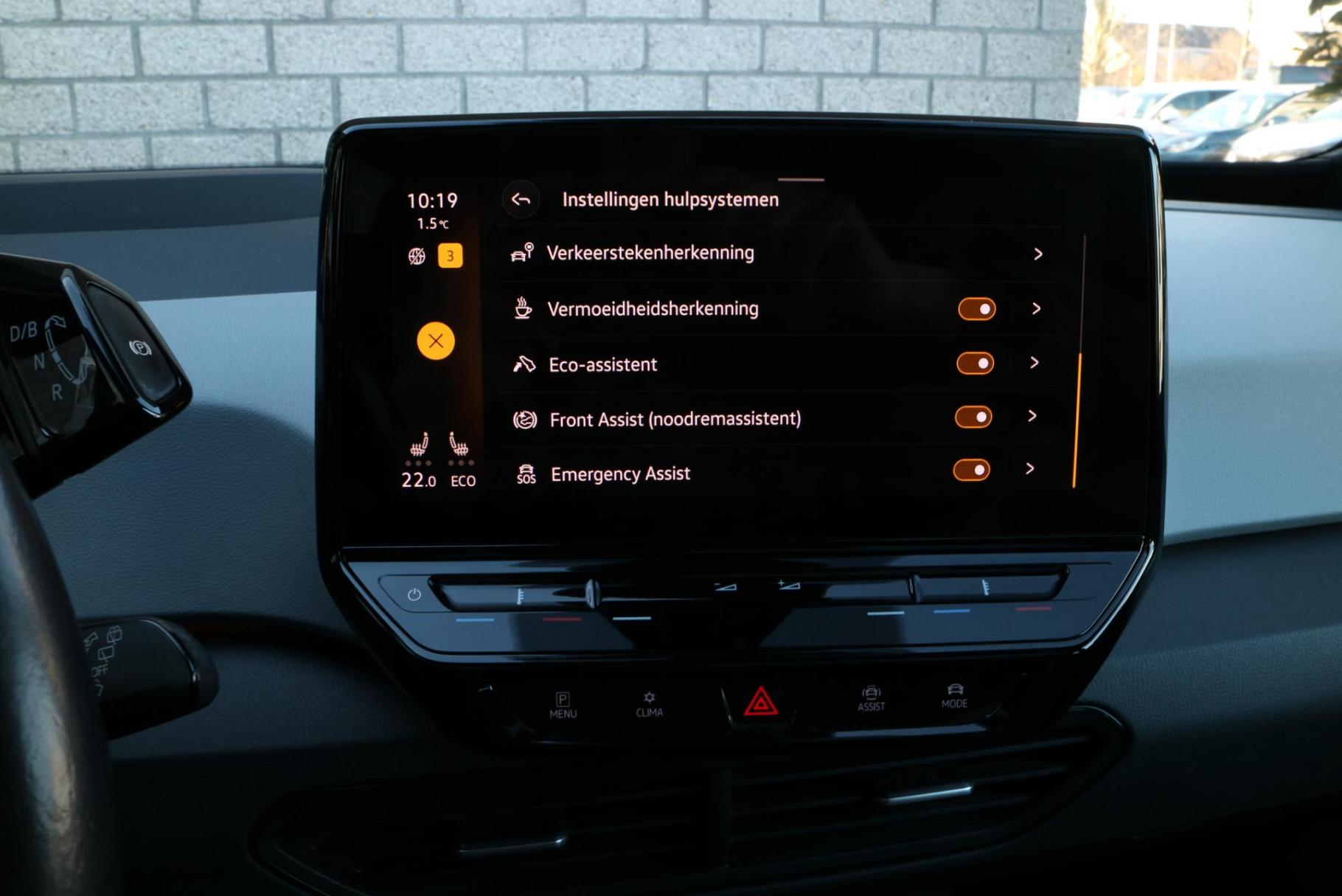 Pragmatisch en veilig als deze auto is, beschikt hij over diverse veiligheidssystemen. Dat de auto steeds meer taken van de bestuurder overneemt, merkt u bijvoorbeeld aan het systeem voor verkeersbord-detectie in deze auto. Deze Volkswagen ID.3 is ook behulpzaam als het gaat om een rechte koers. Het Lane-keeping systeem signaleert en corrigeert als u onbedoeld de rijstrooklijnen dreigt te overschrijden. Ook als uw aandacht even verslapt, blijft de forward collision warning bij de wekker. Dreigt er een botsing met een voor- of tegenligger, dan waarschuwt het systeem direct. U bent mede dankzij head-up display, dodehoekdetectie, hill hold functie, vermoeidheidsherkenning, autonoom remsysteem en bandenspanningcontrolesysteem steeds veilig onderweg.