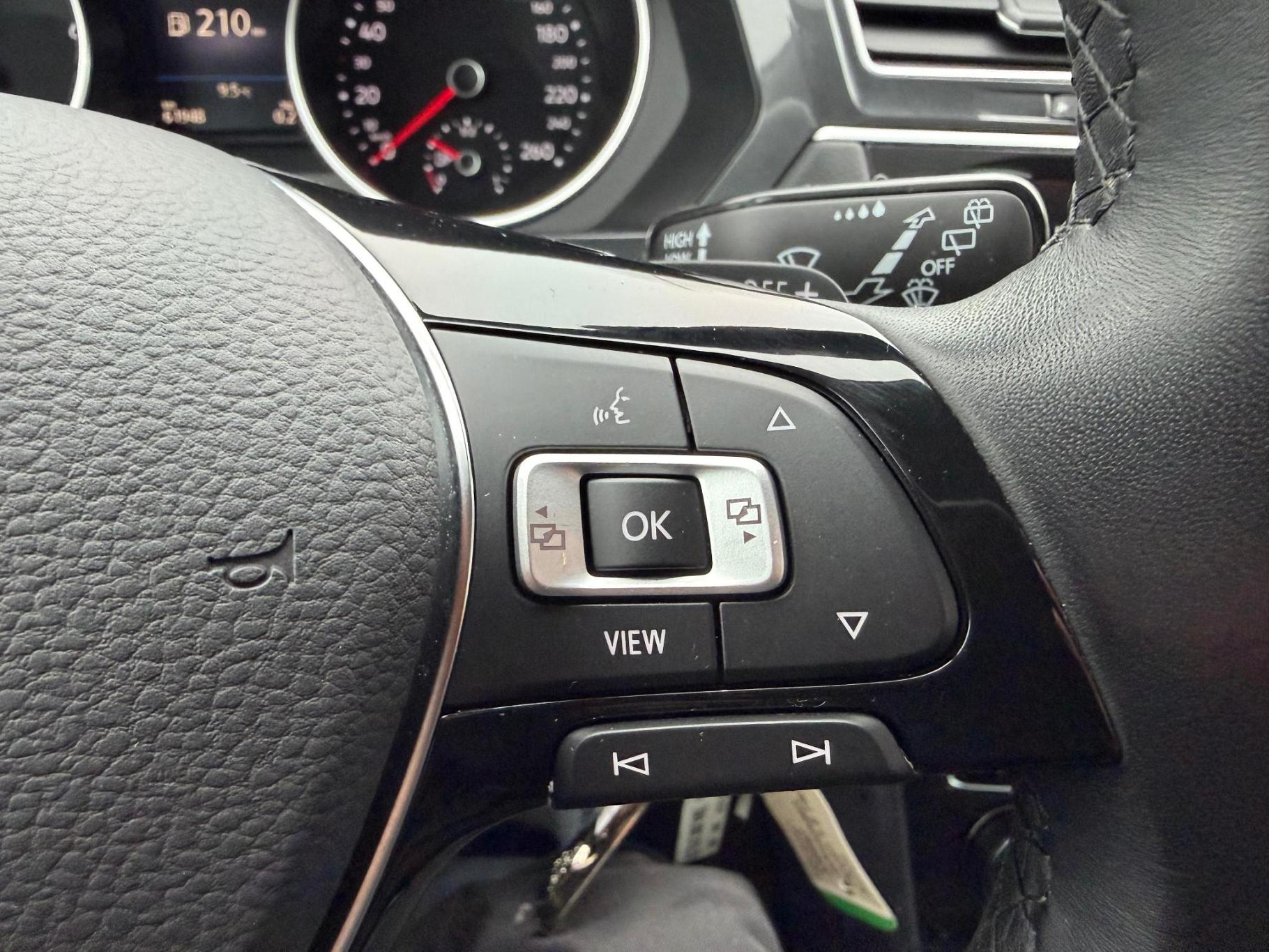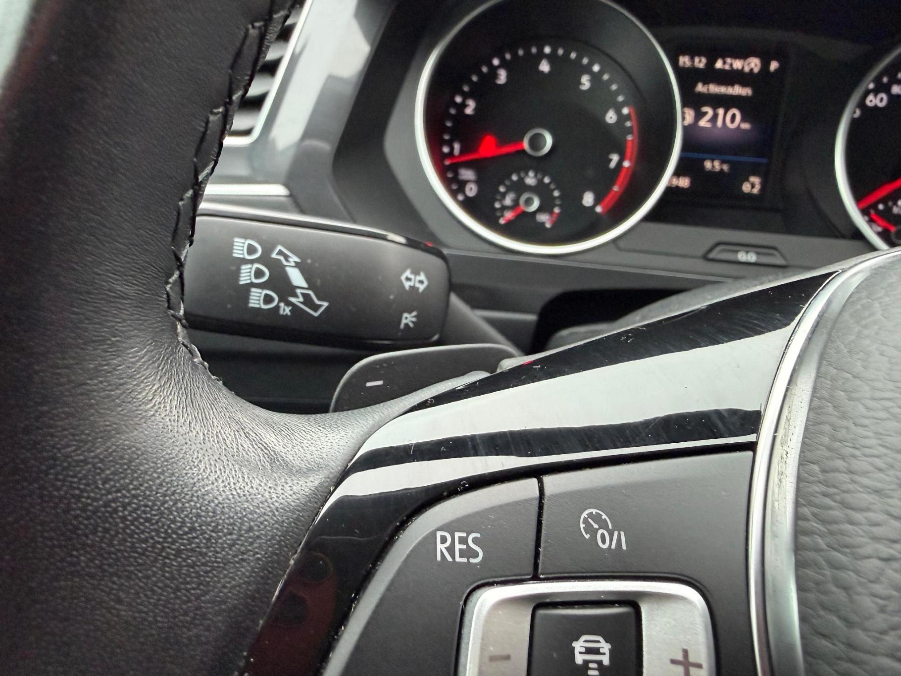 Stel de interface voor uw cockpit naar wens in met het digitale dashboard van deze auto. Alles vrij achter? De achteruitrijcamera laat het meteen zien. Als u de adaptive cruise control inschakelt, regelt de auto zelf de snelheid en de afstand tot de auto voor u. Uw smartphone is tegenwoordig de sleutel tot heel veel. Ook voor deze auto. Remote services, noemen we dat. Waar u ook bent, contact houden is een eitje. In deze Tiguan vindt u schakelaars op het stuur om het full map navigatiesysteem te bedienen en het audiosysteem met DAB-ontvangst. Ook achteropkomend verkeer waarschuwing, automatische airconditioning, regensensor, keyless entry, automatisch dimmende binnenspiegel en lederen stuur horen tot de voorzieningen op deze auto.