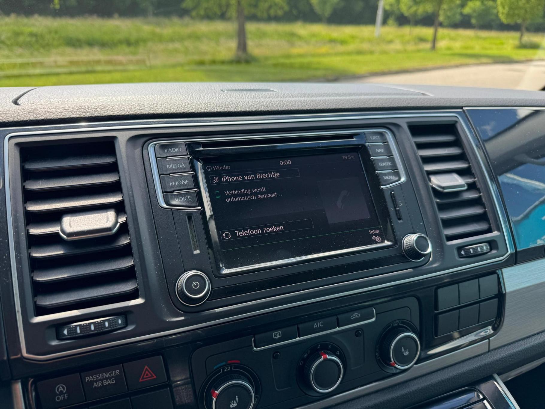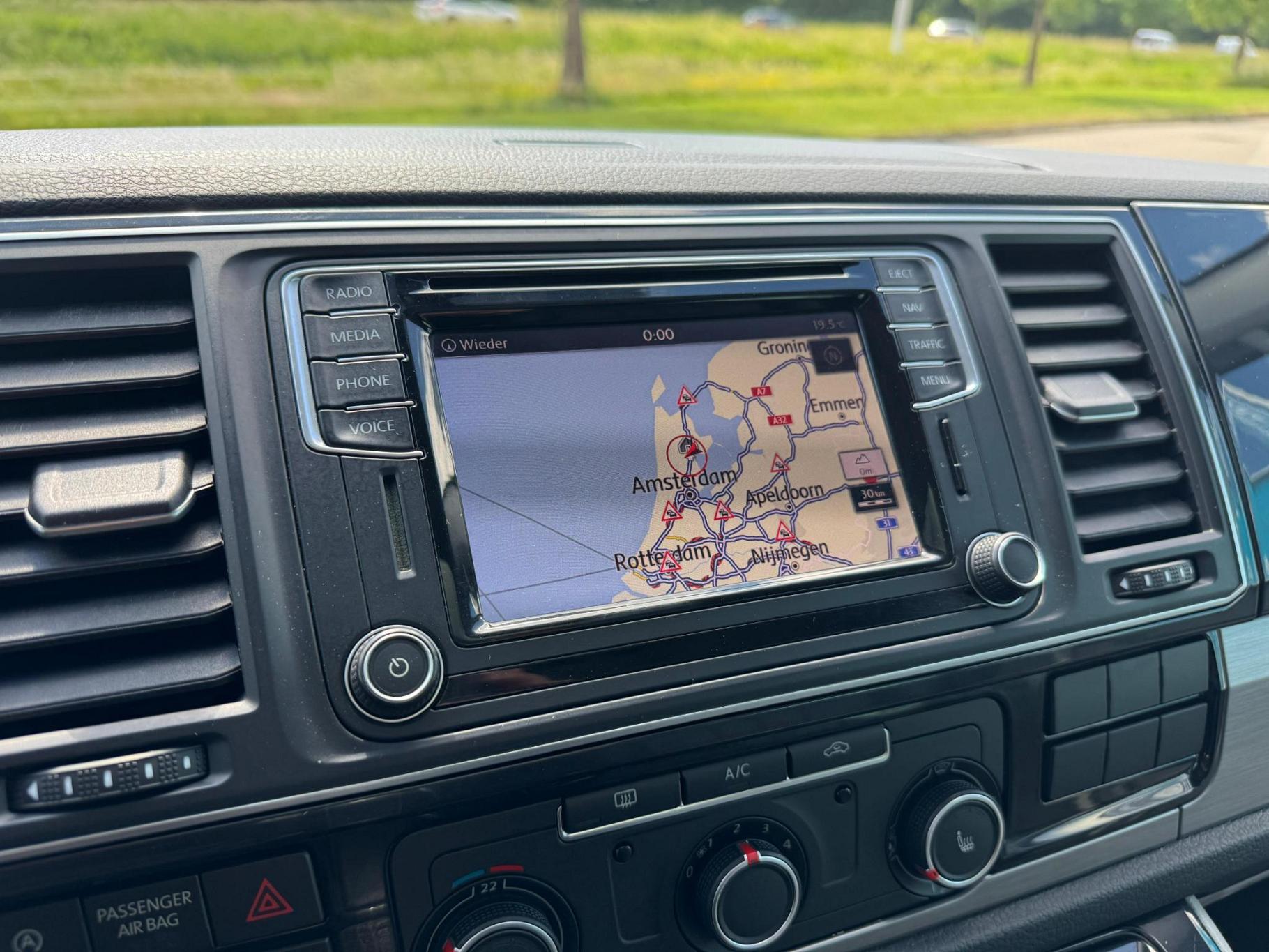 Laat u onderweg niet afleiden, de bediening van het audiosysteem en ook het full map navigatiesysteem gaat met knoppen op het stuur. Natuurlijk is de audio-installatie voorzien van DAB-ontvangst. Parkeerplekken worden er niet ruimer op. Maar met de aanwezige parkeersensoren krijgt u deze Volkswagen Transporter zonder problemen op z'n plaats. Om de veiligheid onderweg te verhogen, heeft deze Volkswagen zowel een automatisch inschakelbare verlichting als een regensensor aan boord, zodat hij zelf de verlichting en de ruitenwissers kan inschakelen. Kilometers rijden met een exacte snelheid? Dan is de cruise control je vriend! Allicht is er in deze auto ook airconditioning. Deze Volkswagen is voorzien van automatisch dimmende binnenspiegel, centrale deurvergrendeling met afstandsbediening en boordcomputer.